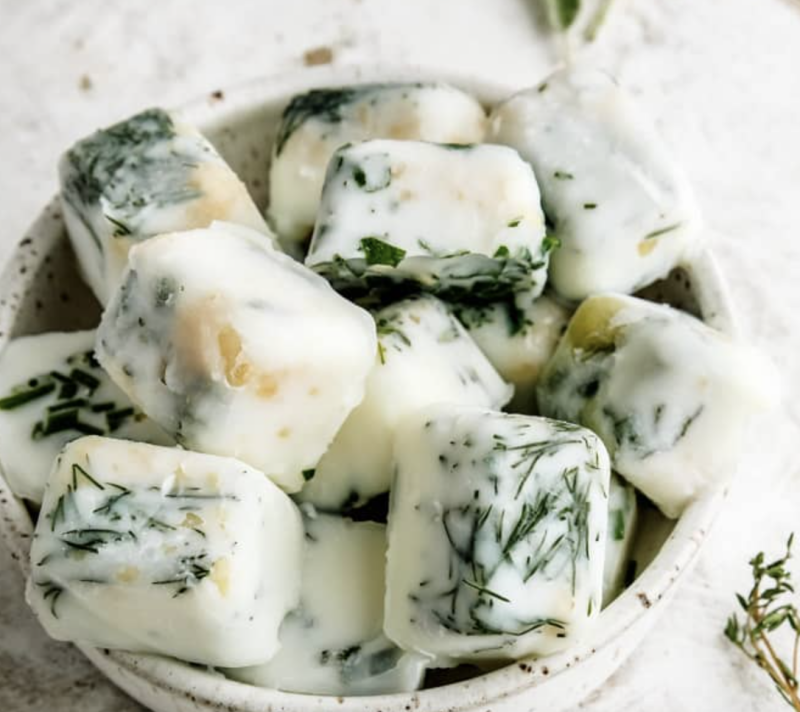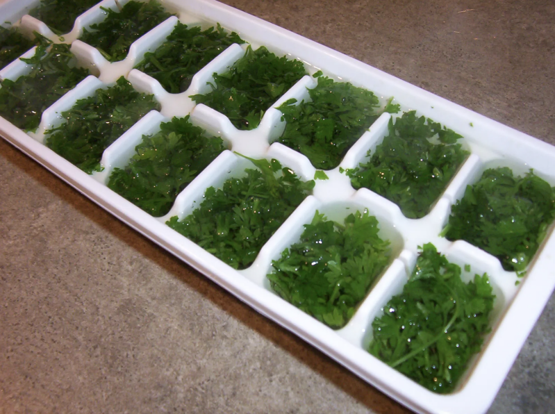 Don't let fresh herbs go off in the fridge - chop them up, put them in some water an ice tray and freeze them. Do this with chives, parsley, basil - or a mix of all of them.