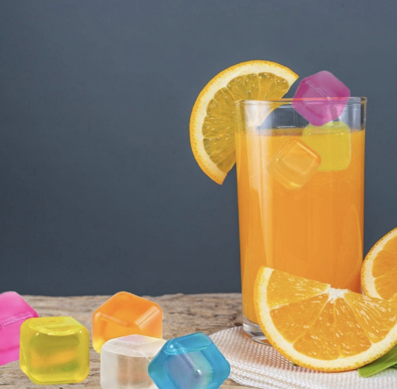 As it melts, the mint and pomegranate flavour meld into the cocktail or soda - swap pomegranate with almost any other fruit for different bursts of flavour.
