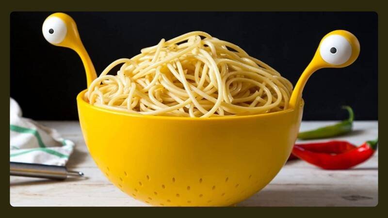 Everything Pasta Themed! Oven mits, pasta scoops shaped like pasta and more. There are some super fun/hacky items in the blog. Some of them use less space then their everyday counter-parts and even cost less.